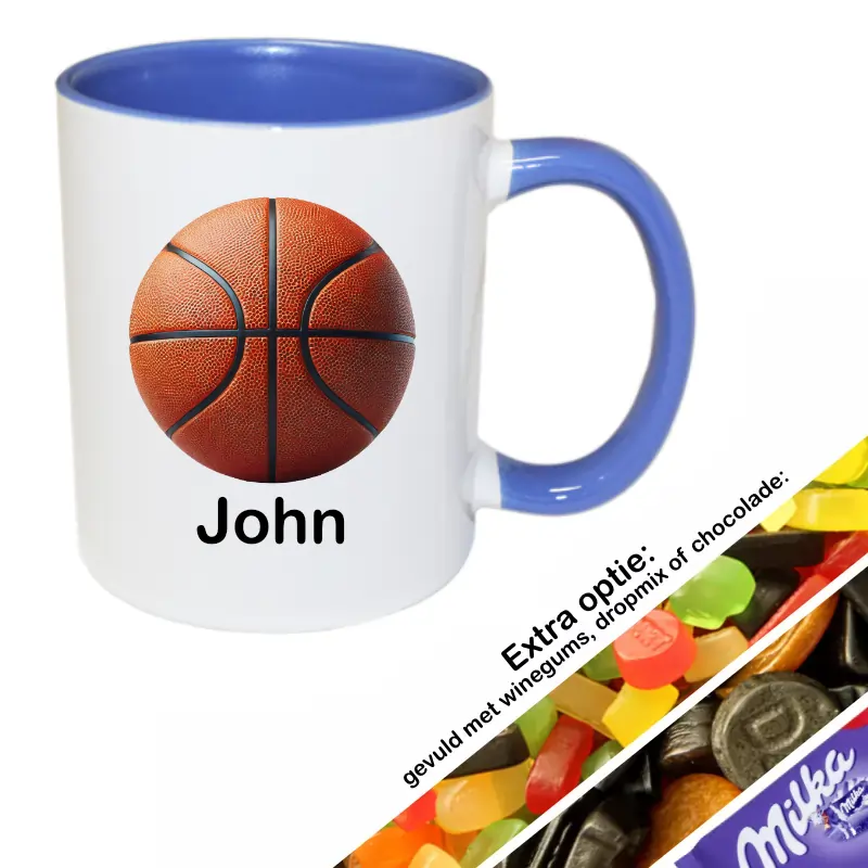 Onze basketbal mokken zijn verkrijgbaar in diverse kleuren, zodat je altijd een mok vindt die perfect past bij jouw stijl of die van de ontvanger. Bovendien kun je de mok laten vullen met heerlijke lekkernijen zoals winegums, dropmix of Milka chocolade. Voor een extra feestelijk tintje kunnen we de mok ook verpakken in vrolijk cadeaufolie. Hierdoor wordt het geven van deze gepersonaliseerde mok nog leuker en specialer.