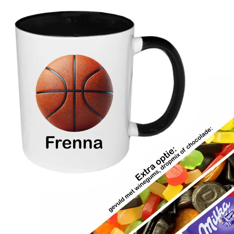 Basketbal mok met naam (zwart):