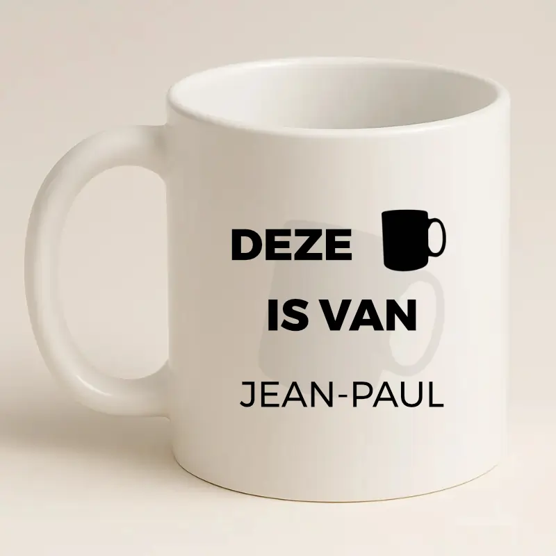 Wil je voorkomen dat je mok steeds wordt verwisseld of dat collega’s per ongeluk jouw beker gebruiken? Met de “Deze mok is van … – Met Dikke Letters” is dat probleem opgelost. Dankzij de grote, duidelijke bedrukking met jouw naam ziet iedereen in één oogopslag van wie de koffiemok of theemok is. Geen verwarring meer bij het koffiezetapparaat, in de kantine of thuis aan de ontbijttafel.