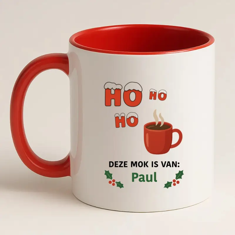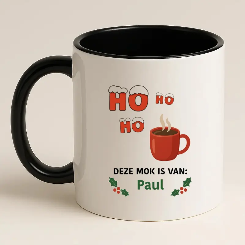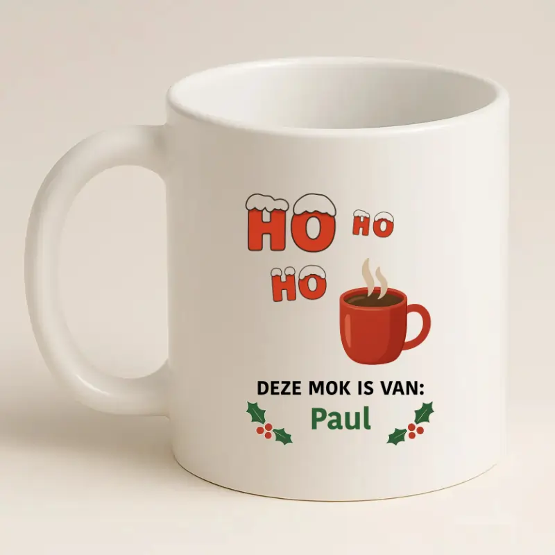 Ho, Ho, Ho deze mok is van … – een vrolijke, persoonlijke én praktische kerstmok waarmee je altijd warm én herkenbaar de feestdagen doorkomt!