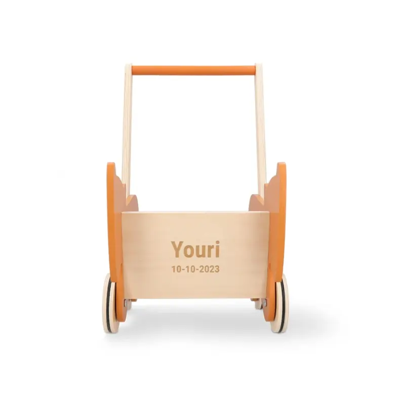 Is de kleine al volop aan de wandel, of zet hij of zij sinds kort zijn eerste stapjes? Deze houten loopwagen met naam is dan een super leuk cadeau om mee te spelen.
