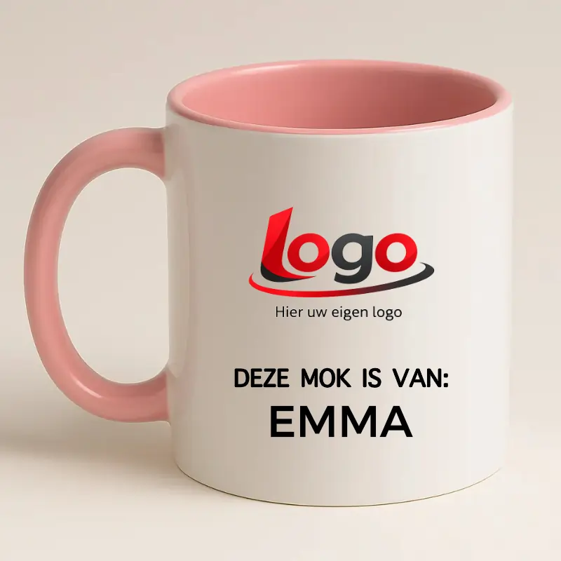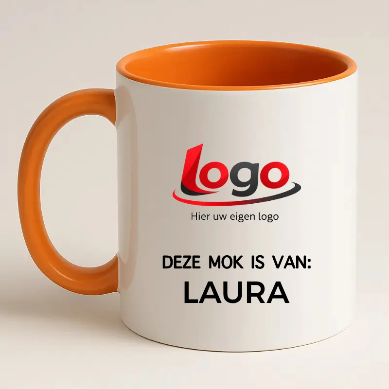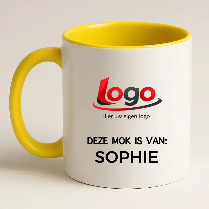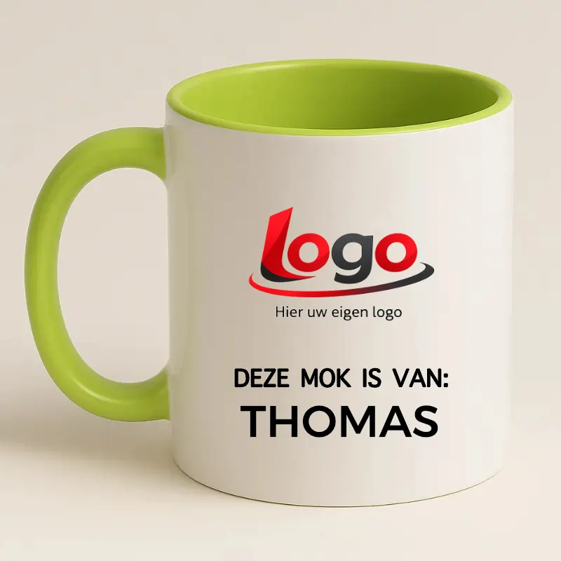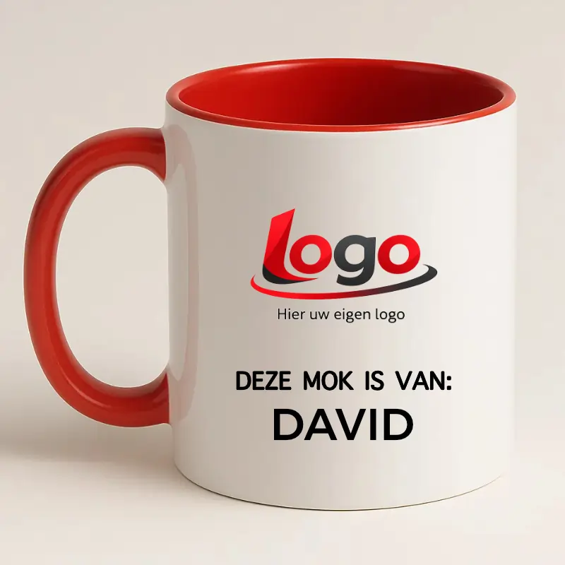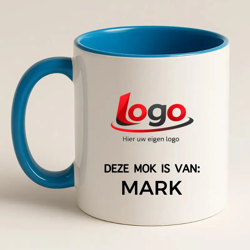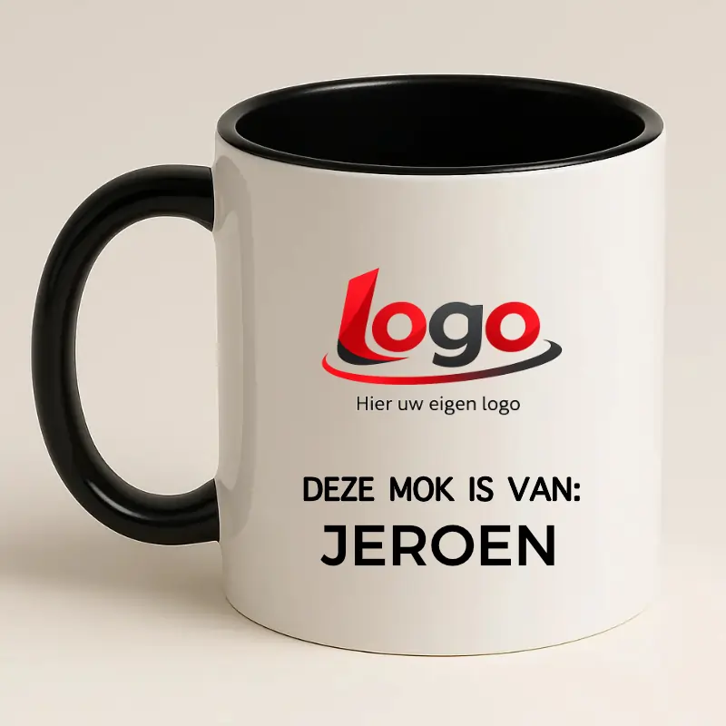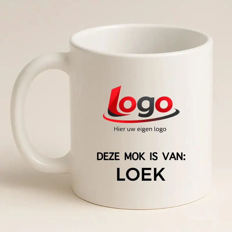 ✔️ Persoonlijk – eigen logo + “deze mok is van …” met naam