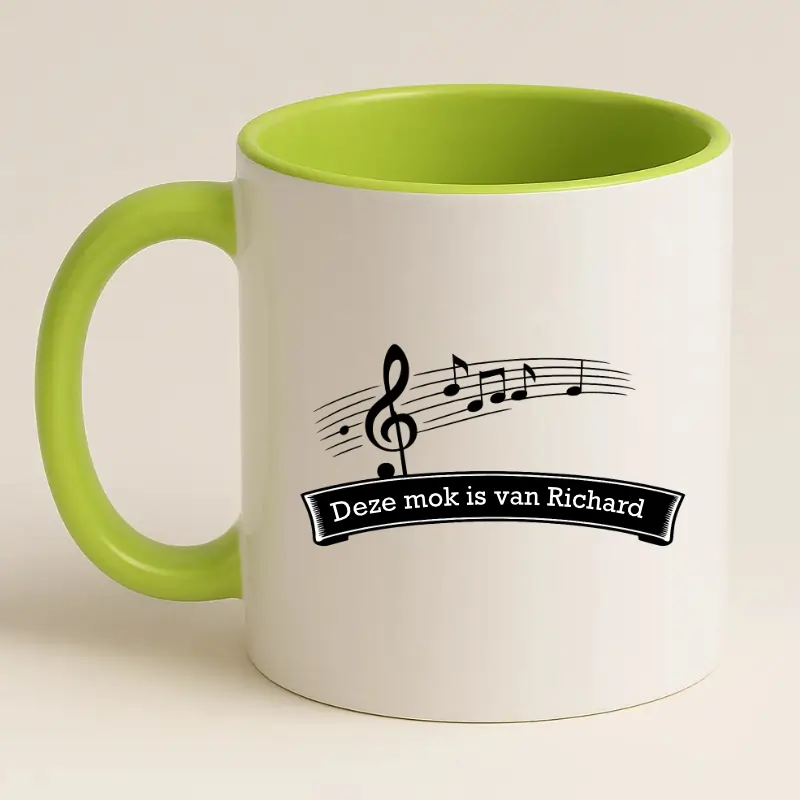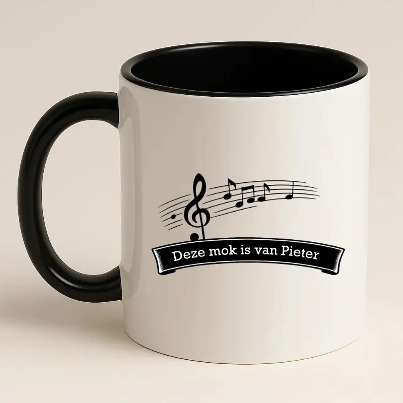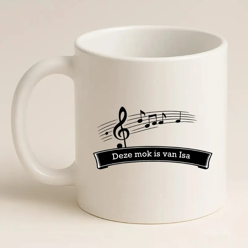 Muziekmok met naam: “Deze mok is van [naam]”
