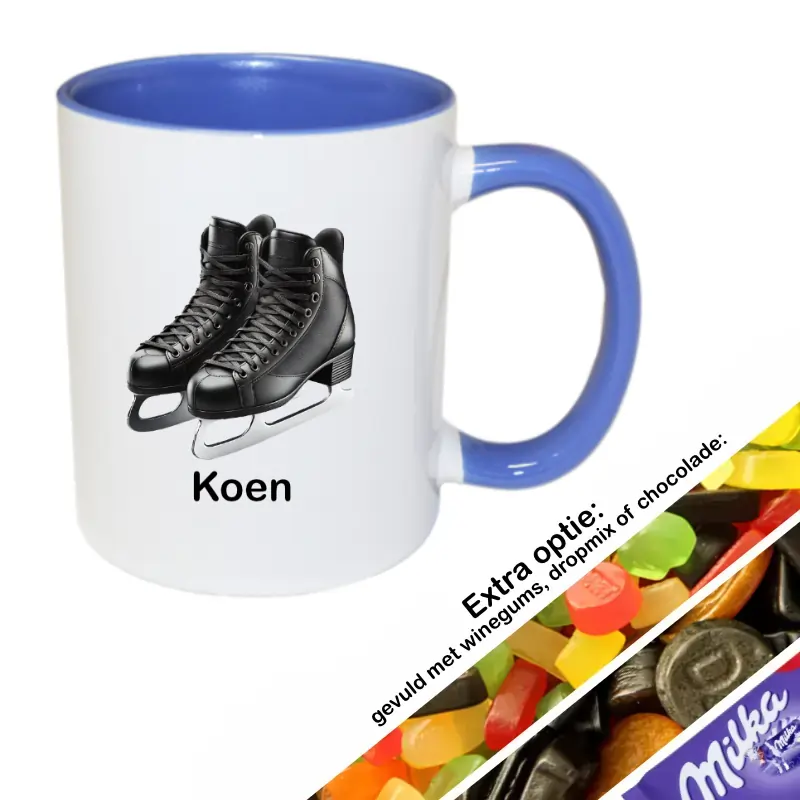 Als extra optie kan de mok feestelijk worden ingepakt in cadeaufolie, wat het cadeau nog specialer maakt. Daarnaast kun je de mok laten vullen met snoep naar keuze: kies uit winegums, dropmix, of Milka chocolade. Deze extra’s maken de schaatsen mok met naam niet alleen een prachtig geschenk, maar ook een smakelijke verrassing.